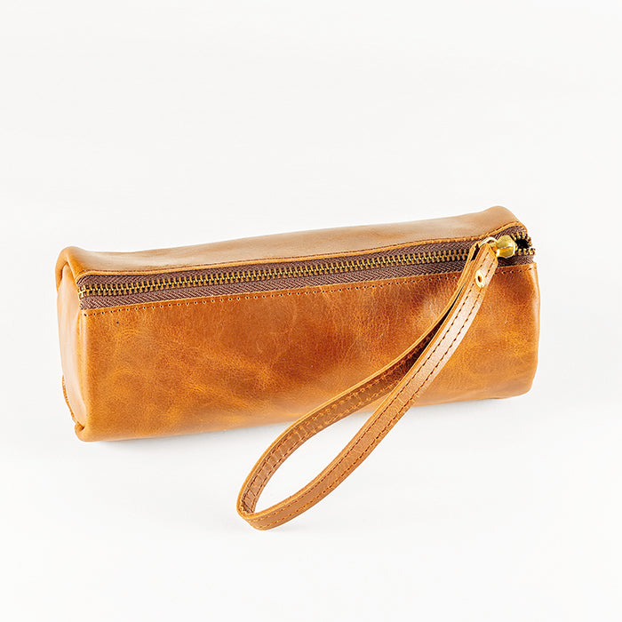 The pencil pouch you used in school just got an upgrade! Our unisex leather Stow Away pouch packs simple drawing tools, make- up items, or even a weekend toiletry kit. Fits in all of our purses for ladies and is the perfect accessory for our Mercury Messenger Bag. The zip/handle combo makes it possible to grab and go.